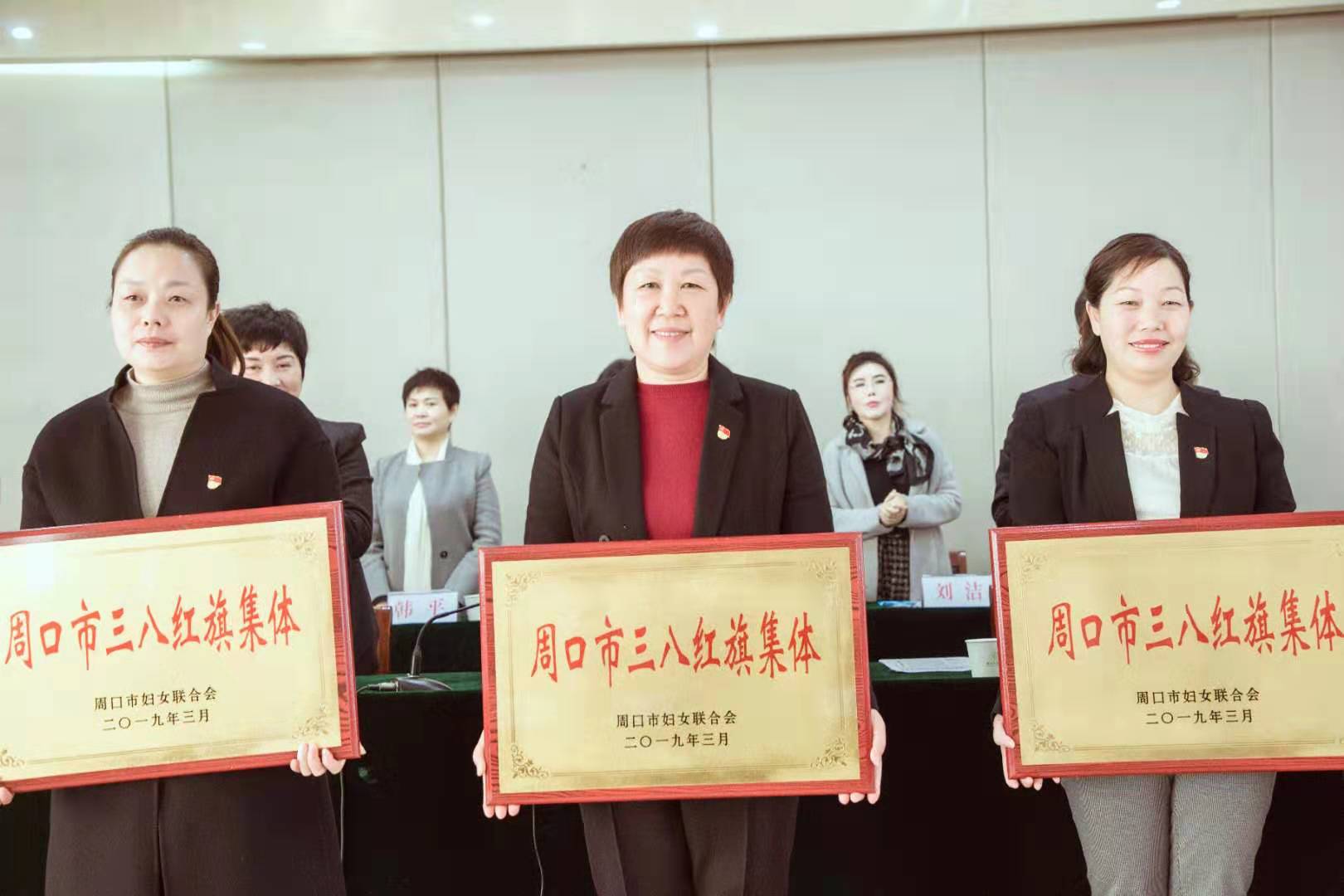 3月5日上午,我市纪念“三八”国际妇女节109周年暨妇联三届九次执委(扩大)会召开,总结全市2018年妇女工作,部署2019年工作任务,表彰先进典型,动员全市广大妇女为新目标奋斗,在新征程建功,奋力谱写周口高质量跨越发展巾帼篇章。在对我市经济和社会发展中做出突出贡献的“三八红旗手”、“三八红旗集体”、“巾帼文明岗”和“妇联系统先进集体”等先进典型的表彰中,我校获“三八红旗集体”荣誉称号。