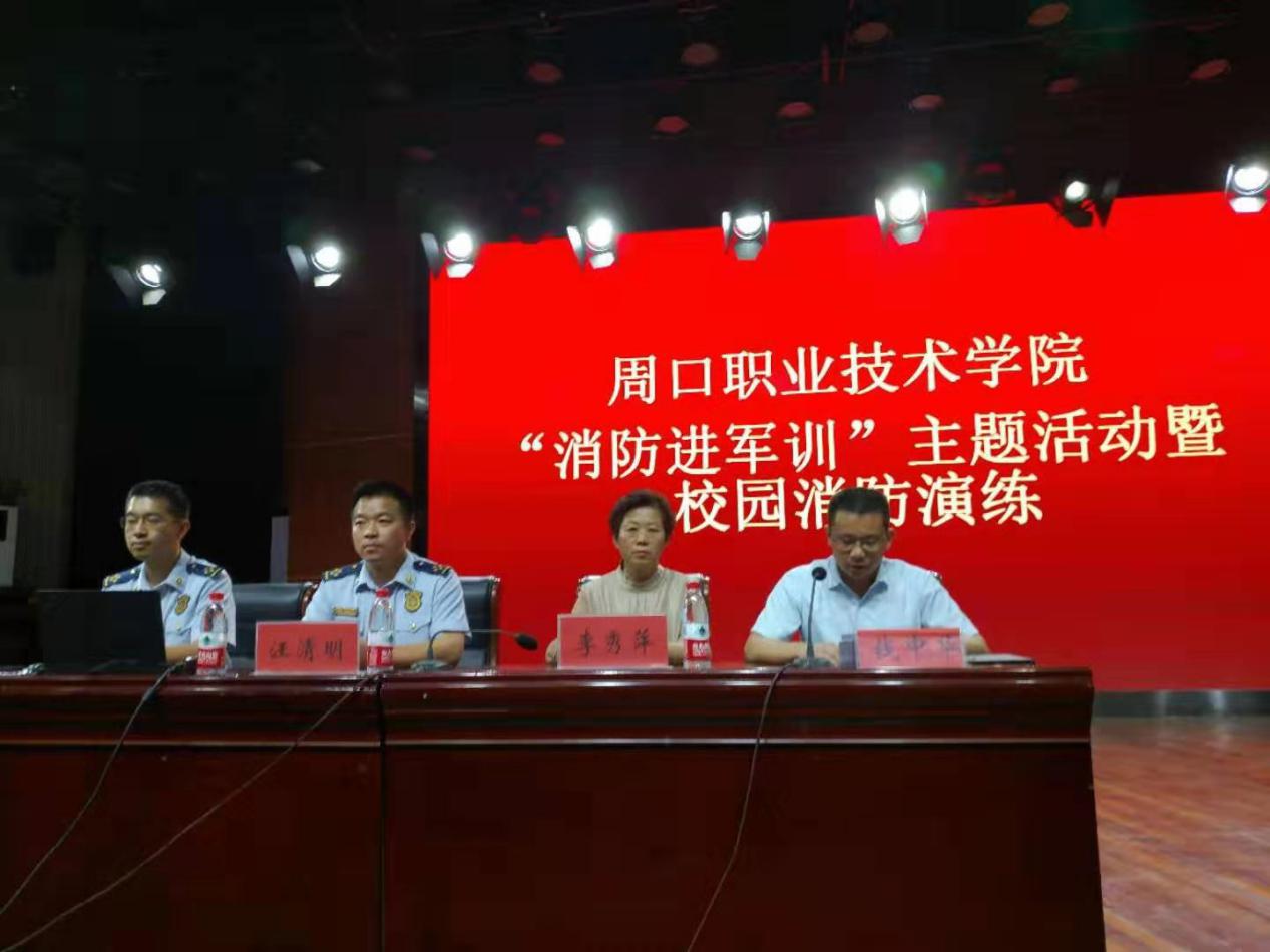 按照《河南省教育厅、河南省消防总队关于做好2019年学校消防安全教育工作的通知》、《河南省教育厅办公室转发省防火安全委员会关于印发“防风险除隐患保平安迎大庆”消防安全专项行动宣传工作实施方案的通知》文件精神,9月18日下午,我校邀请周口市开发区消防救援大队官兵来校开展“2019年消防进军训”活动。2019级新生和军训教官共同参加了活动。