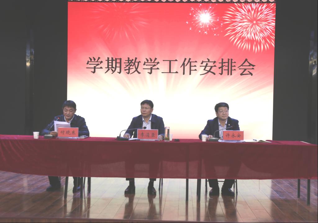 最后,李清臣校长做了总结发言,他充分肯定了过去一年中教学工作取得的成绩,要求大家在新的学期中,要以更高的标准不断前行,进一步抓好日常教学管理工作,切实提高教学质量,培养出更多的合格人才,为地方经济做出应有的贡献。