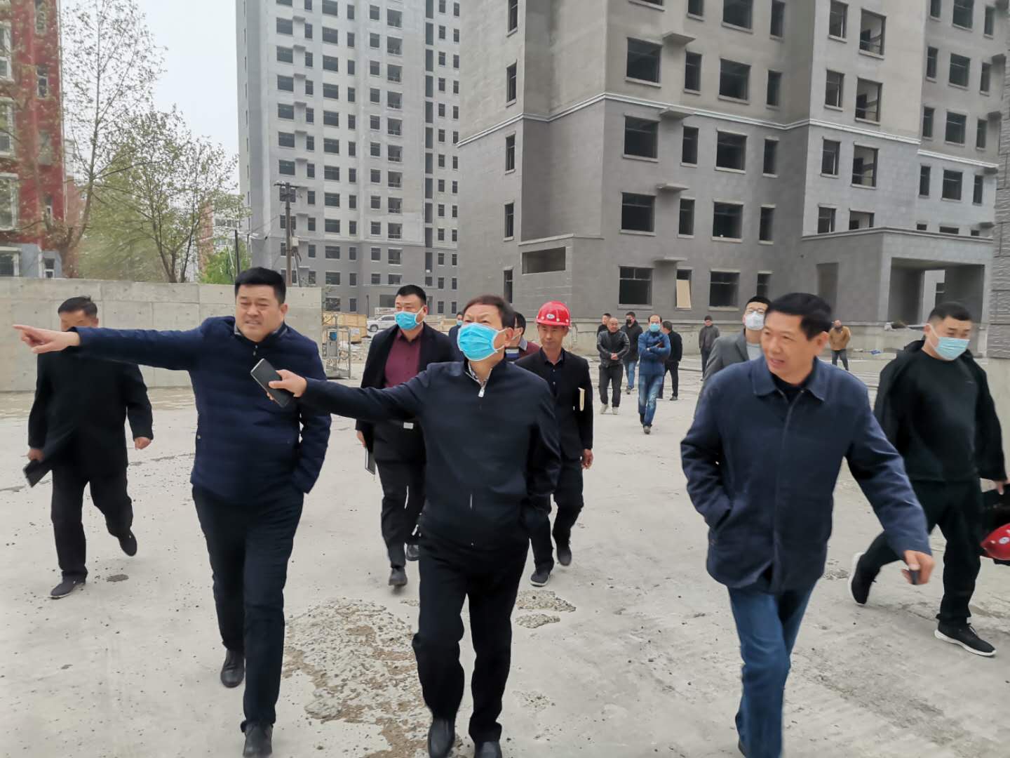 李清臣一行首先来到施工现场实地察看,对窗户安装、水电管道、外墙粉刷和走廊墙砖铺设等方面向施工单位负责人进行仔细询问,嘱咐施工方在确保安全、确保质量的前提下尽全力加快施工进度。