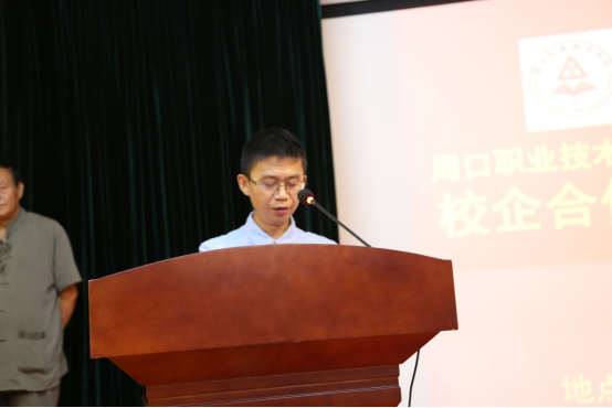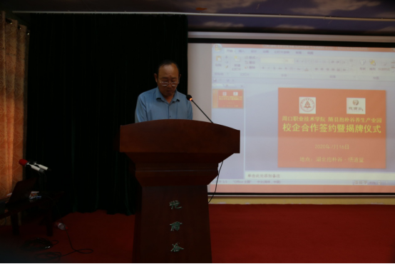 校长李清臣在讲话中介绍了我校的办学理念、办学成果,对抱朴谷养生产业园近年来的发展表示肯定。他表示,我校与抱朴谷养生产业园的校企合作开启了共商、共建、共享、共赢的崭新篇章,今后双方将采取“优势互补、互惠互利、共谋发展、共享成果”的原则,统筹规划教科研平台,统筹推进社会服务,加快双方人才、资源、服务等方面的全方位、深层次融合,实现倍增效应,为我校的人才培养、专业建设及师生教育实习实训提供有效支撑,为随县抱朴谷养生产业园腾飞发展、快速前行插上有力的翅膀,达到双方互利共赢,为振兴地方经济、促进社会发展做出应有贡献。