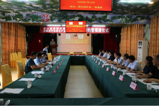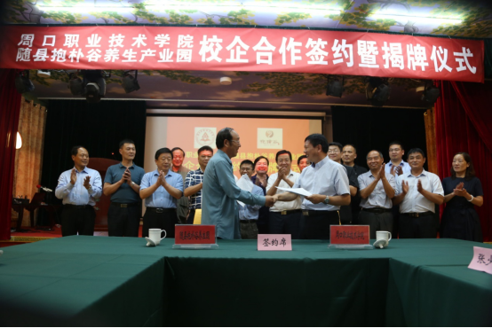 随后,校党委书记刘士欣、随县副县长陈新,校长李清臣、随县抱朴谷养生产业园董事长杜天奇共同为双方校企合作揭牌。