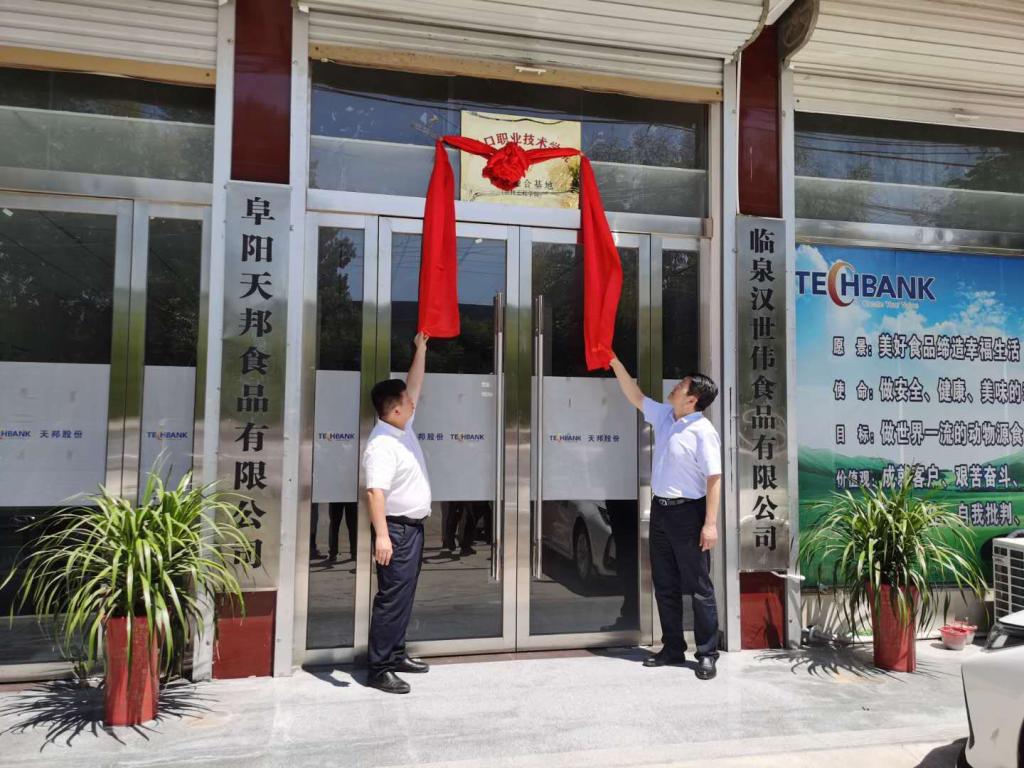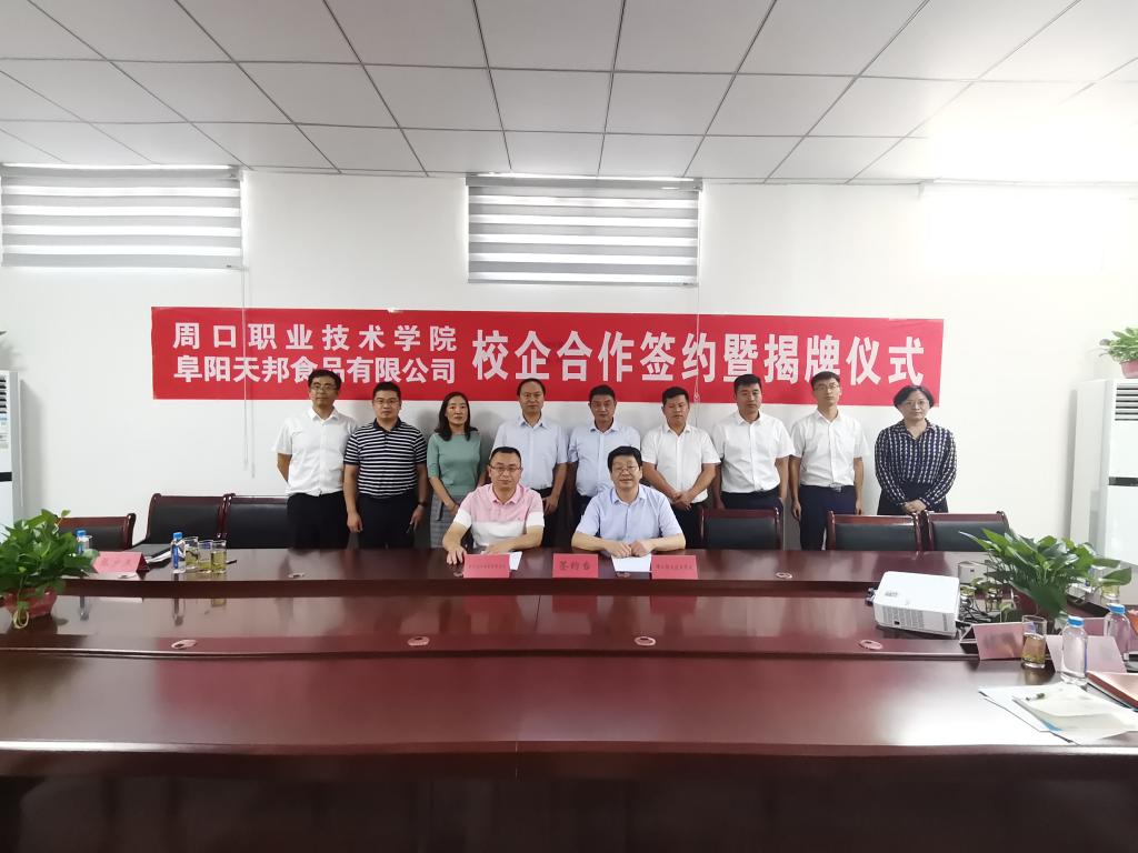8月27日上午,副校长许永安带领教务处处长付晓东、招生就业处处长武金娟、农牧工程学院党总支书记李民、农牧工程学院院长李嘉和相关人员,一行7人到阜阳天邦食品有限公司参加产教融合签约及揭牌仪式。