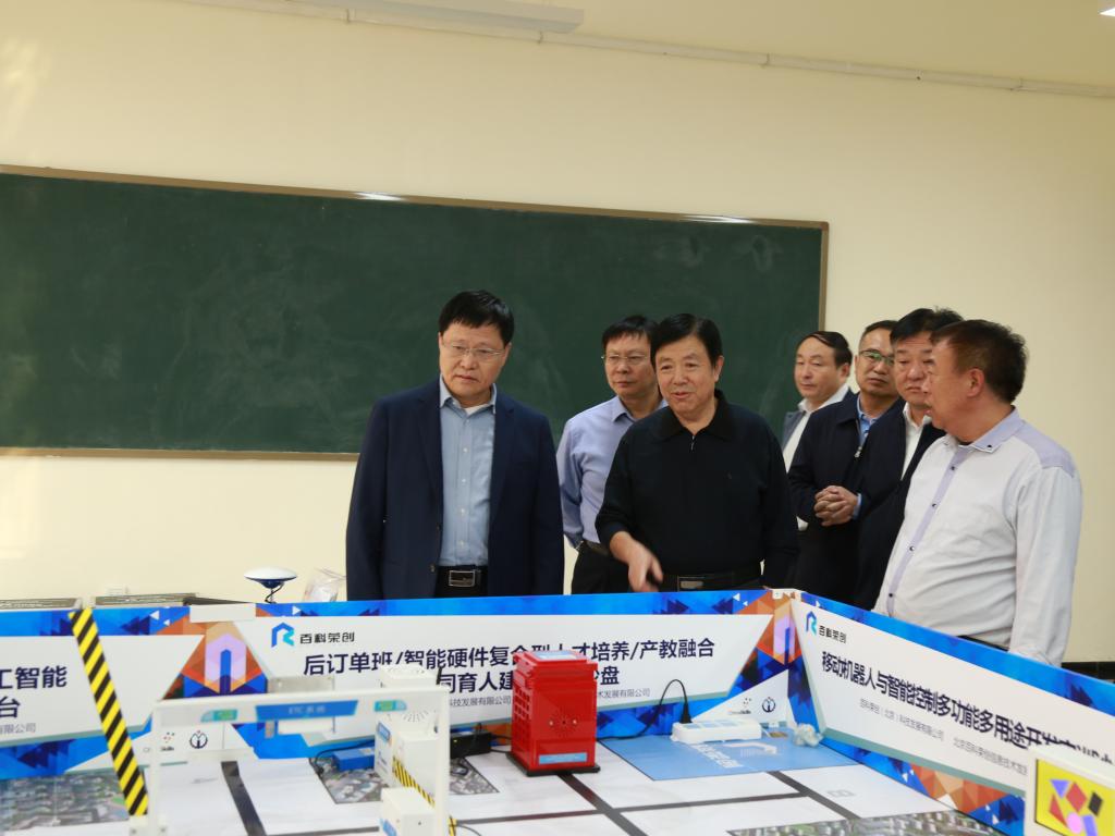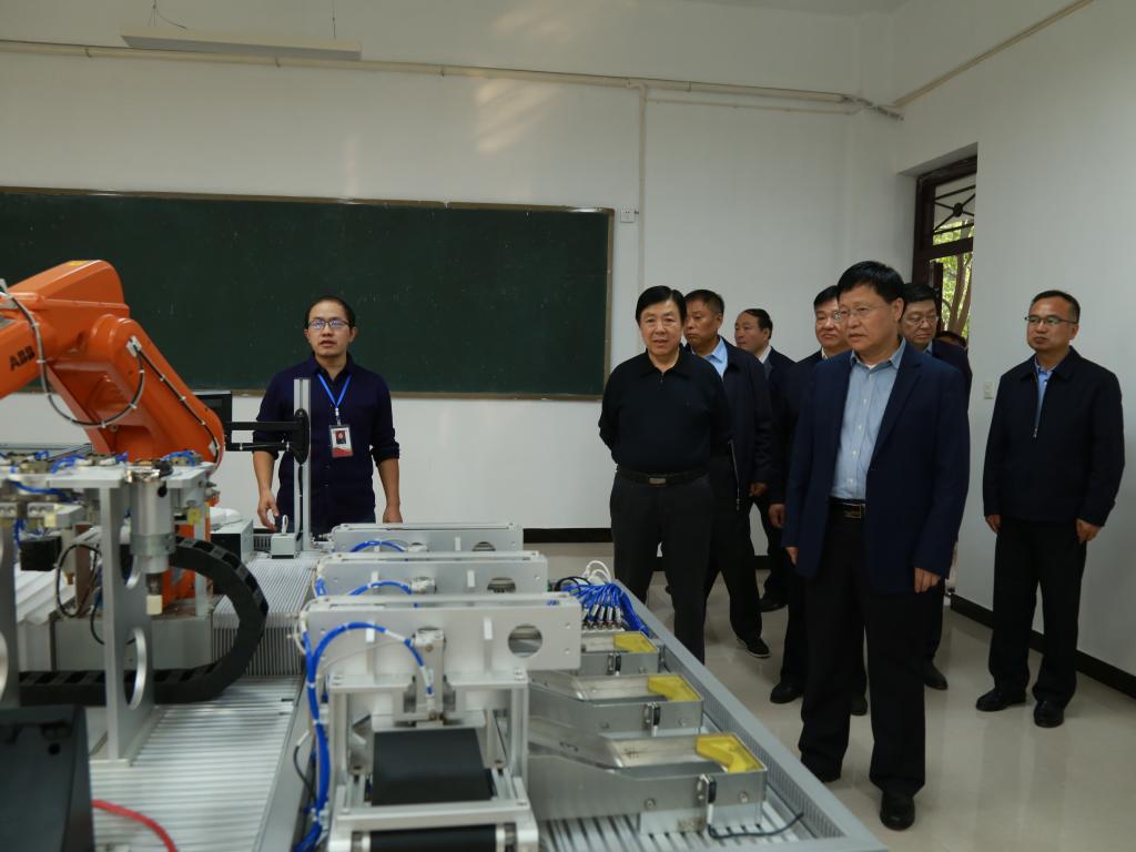 梁建松一行在校党委书记刘士欣、校长李清臣等校领导、相关部门负责人的陪同下,实地详细察看了我校汽车实训室、中兴实训室、图书馆、网络中心、机器人实验室、体育馆、学生餐厅等教育教学设施。
