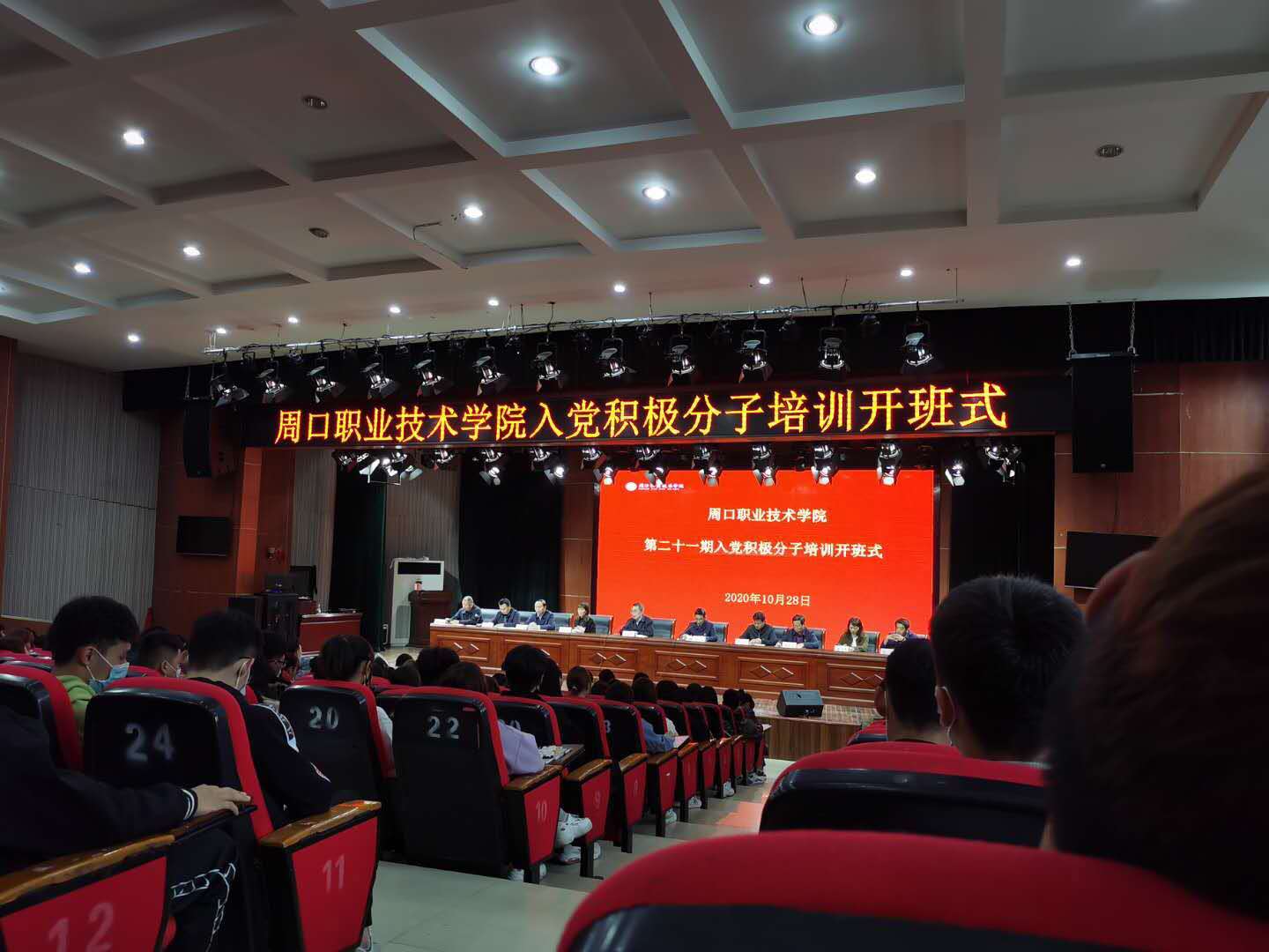 10月28日下午,在我校砺德厅举办周口职业技术学院第21期入党积极分子培训开班式。党委副书记赵振然出席开班式并讲话。校组织统战部部长高飞、团委书记史丽珍、各二级学院党总支书记及各学院入党积极分子参加会议。组织统战部部长高飞主持开班式。