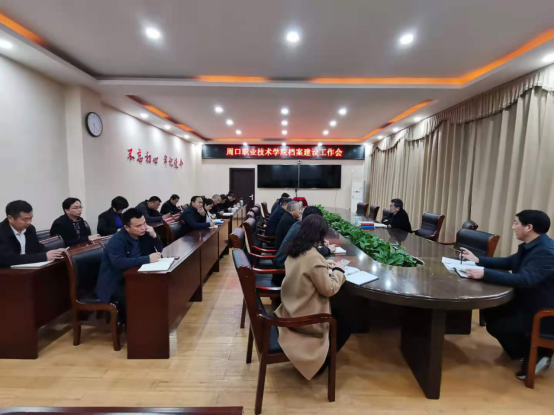 会议要求,一是正视档案工作存在的问题和不足。主要是档案观念淡薄,法规意识不强。二是高度重视学校档案工作。今年是学校“治理效能提升年”,“加强档案管理工作”被列为全校55项重点工作之一。全校各部门要切实提高站位,从思想和理念上增强档案意识,强化对档案工作的领导和目标管理,将档案工作纳入年度综合考核内容。三是扎实做好学校档案工作。一要完善制度,加强档案规范化管理。根据国家新出台的档案法等有关法律法规,抓紧制定出台《周口职业技术学院档案管理暂行规定》。二要服务大局,充分发挥档案的凭证查考价值。认真做好档案的形成、收集、整理工作,积极为教学、科研、管理等工作服务。三要树牢保密意识,严格执行档案查阅和安全保密制度,确保档案安全。四要科学规划,积极推进档案信息化建设。五要加强队伍建设,提高专兼职档案人员综合素质,依法规范档案管理行为。