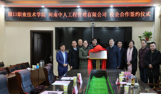 12月30日,周口职业技术学院、河南中人工程管理有限公司校企合作签约揭牌仪式在周口职业技术学院开元校区举行。副校长许永安、教务处长付晓东、招生就业处长武金娟、建筑工程学院党总支书记范伟杰、建筑工程学院院长薛洪和相关人员,中建教育集团总经理衡晓娜、河南中人工程管理有限公司总经理董文林、河南中人工程管理有限公司的校企合作部经理路洋、人力资源经理王伟共同参加了仪式。