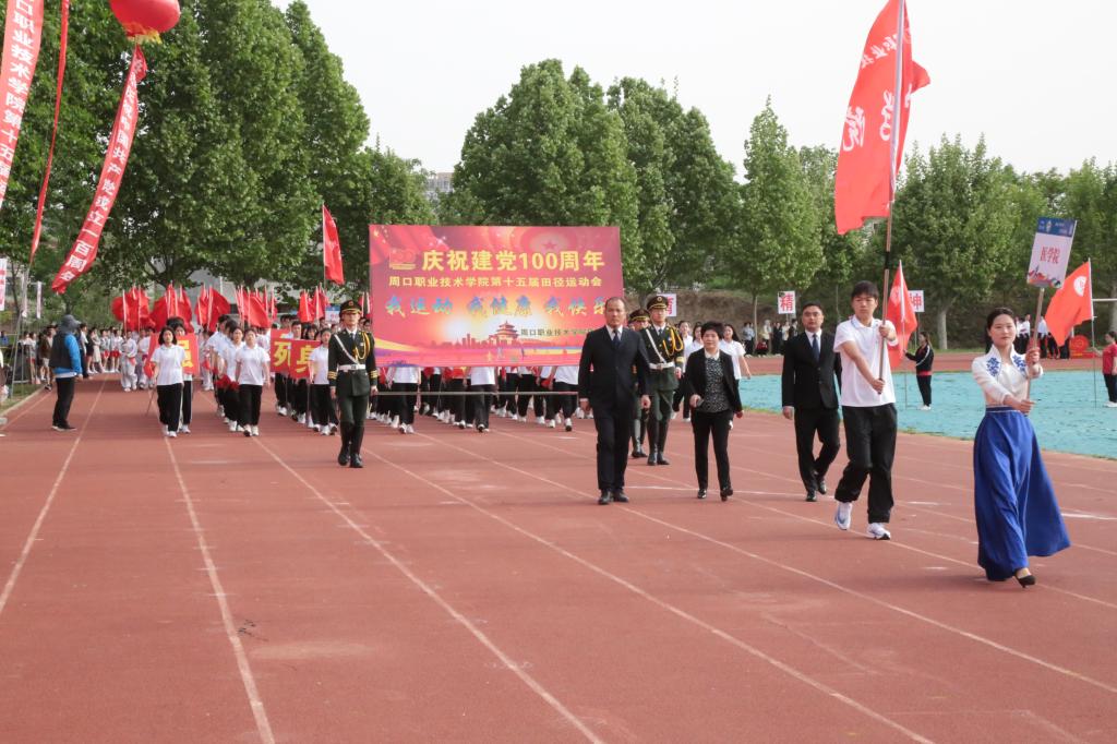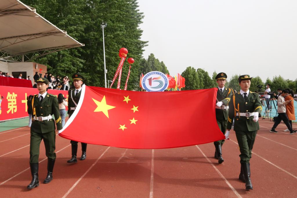 庄严的国歌声响彻整个运动场后,党委书记刘士欣宣布周口职业技术学院第十五届田径运动会开幕。