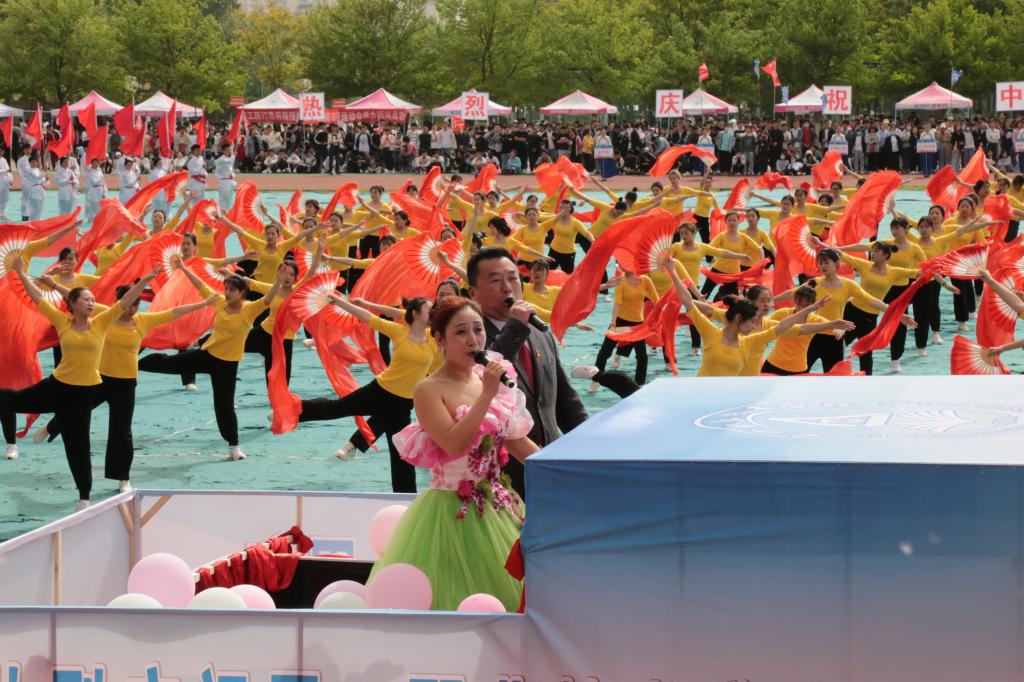 开幕式文艺表演在由文化教育学院300名女生组成的手翻花方队表演的《盛世花开》中拉开序幕。伴随着音乐,同学们运用手上的道具变换出不同的色彩和“周职20周年校庆”,“庆祝建党100周年”等文字图形。表达出同学们对党的敬意和向往以及对学校的祝福;学前与艺术教育学院学前教育专业同学组成的200人啦啦操方队手拿彩球在体育场中央雀跃起舞。她们灿烂的笑容,动感的节拍,带动了所有人的活力和热情;体育教育学院学生表演的《中国功夫》带来太极拳、少林拳、长拳、南棍、少林刀、规定枪动作等展示,充满力与美;学前与艺术教育学院300名女生组成的表演方阵,伴随着杜一萍老师演唱的《爱我中华》、高飞和黄婷婷老师演唱的《永远跟党走》、穆向阳和王国俭老师演唱的歌曲《向往》,同学们手持长尾扇翩翩起舞表达对祖国和党的热爱。