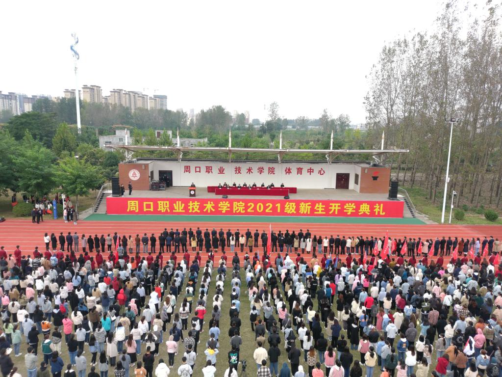 10月11日,周口职业技术学院在开元校区体育场举行“国旗下晨光正好”升旗仪式暨2021级新生开学典礼。党委书记刘士欣、校长李清臣、党委副书记赵振然、纪委书记唐永宾、副校长李明臣、李秀萍出席典礼,学校中层正职及部门负责人、全体辅导员和2020级学生代表、2021级全体新生参加典礼。副校长李秀萍主持典礼。