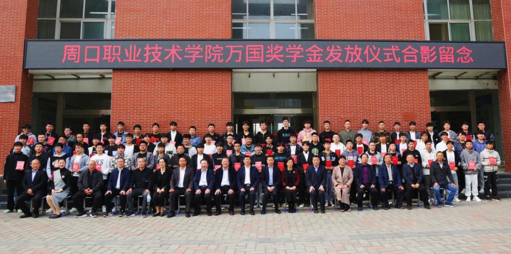 10月29日上午,学校在开元校区砺德厅举行万国奖学金发放仪式。万国集团董事长兼周口汽车服务业商会会长吕辉,周口职业技术学院校长李清臣,副校长李明臣、李秀萍,万国集团副总经理邝金生、朱永兴,万国集团副总经理兼万国运营总经理赫然等出席活动。副校长李秀萍主持活动。