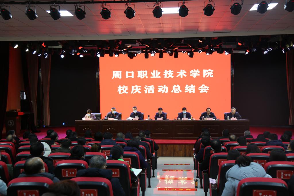 校党委书记刘士欣在讲话中高度赞扬了此次校庆工作成果。他指出,校庆系列活动圆满成功,高潮迭出,精彩纷呈。举办了一场隆重、热烈、喜庆的庆祝大会;召开了一场隆重的表彰大会;促成了一场周口职业教育高质量发展论坛;成功推动了一场研究我校更名、迁建升本的市委书记办公会;制作了一部校庆专题宣传片;印制了一本精美的宣传画册;编演了一台美轮美奂的文艺节目;做出了一个重大具有深远历史意义的决议。
