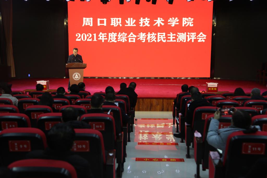 2022年1月7日上午,学校在开元校区学前与艺术学院演播厅召开2021年度综合考核民主测评会。全体校领导出席测评会,全校正科级以上干部参加会议,党委副书记赵振然主持测评会。