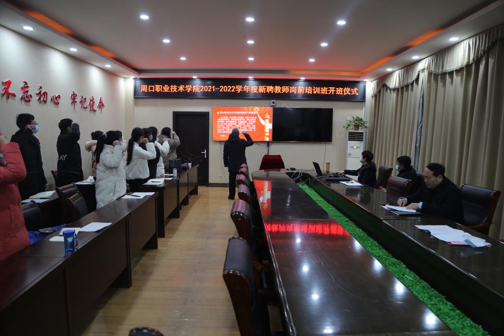 开班仪式上,李庶泉宣读培训方案并强调此次培训的目的及纪律要求;人事处处长万四新带领新聘教师进行入职宣誓;新聘教师代表杨帆做了表态发言。