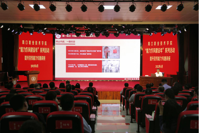 本次专题讲座是周口职业技术学院“能力作风建设年”活动提升工作能力系列讲座的第二讲。会议要求大家务必认真学习领会和准确把握讲座重要内涵和精神实质,各级党组织特别是广大党员干部务必结合工作实际将今天的学习成果转化为实际行动,增强主人翁意识,强化校兴我荣、校衰我耻的责任感,弘扬正气,开拓创新,充分发挥宣传思想工作的桥梁和纽带作用,讲好周职故事、传播周职声音、树立周职良好形象,为推进学校高质量发展添砖加瓦。