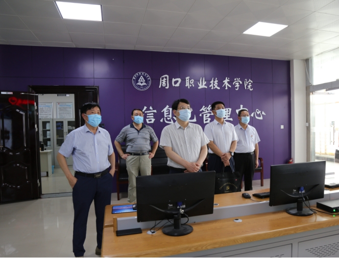 路培果察看了周口市植物新型快繁技术重点实验室、工业机器人实训室、嵌入式技术实训室、3D打印实训室、文化教育学院党员活动室、京东电商人才孵化基地、信息化管理中心、正保财务大数据实训基地、中兴IT智慧农业基地等教学实训场所,并与教师互动交流。