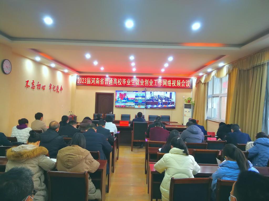 12月13日下午,河南省教育厅、人力资源和保障厅召开2023届河南省普通高校毕业生就业创业工作网络视频会议。我校在开元校区第三会议室设分会场,校长李清臣,副校长李秀萍参加会议。