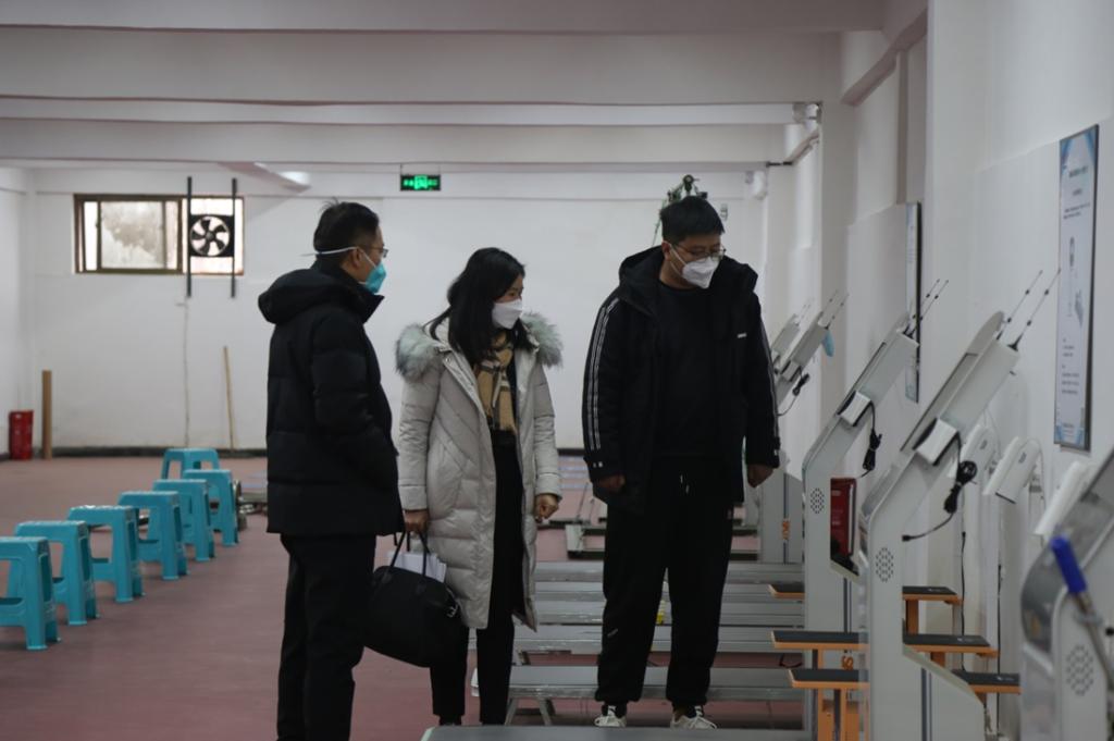 会后,郭嘉一行参观了开元校区的体质达标测试室,针对器材的使用、器材的智能化提供了意见与建议。