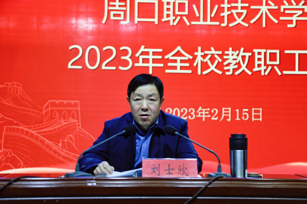刘士欣作总结讲话。他指出,回首过往,众志成城创辉煌。2022年,学校各项工作取得突破性进展。一是立德树人成效显著。招生质量再创新高,教学水平不断提升,学生管理扎实有效,就业创业稳步提升。二是师生健康强力守护。面对疫情多点多源并发的严峻复杂形势,学校坚决贯彻落实中央、省、市疫情防控决策部署,抓紧抓细抓实疫情防控工作,坚持全校“一盘棋”,快速反应、及时应对,精准研判、科学决策,组织有序、克难攻坚,各部门恪尽职守、各司其职、通力合作,全校师生团结协作、迎难而上,构筑起坚不可摧的抗疫防线。三是党建引领初心永驻。加强基层党组织建设,抓好干部队伍建设,抓牢意识形态和网络意识形态安全工作,加快实施人才强校战略,深入开展能力作风建设,加强党风廉政建设,认真做好市委巡察整改工作。四是学校其他工作全面进步。教职工获得感、幸福感持续提升,统战、群团工作成绩优异,社会服务能力不断增强。