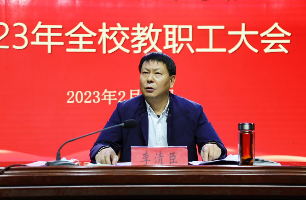 2月15日下午,学校在开元校区砺德厅召开了2023年全校教职工大会。学校党委书记刘士欣出席会议并作总结讲话,在周校领导李庶泉、唐永宾、李明臣、李秀萍及全体教职工参加会议。会议由校长李清臣主持。