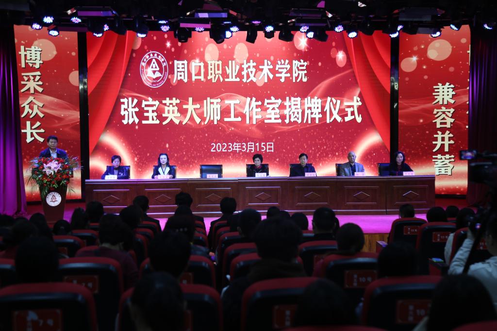 3月15日下午,周口职业技术学院张宝英大师工作室揭牌仪式在我校开元校区艺术演播厅成功举行。