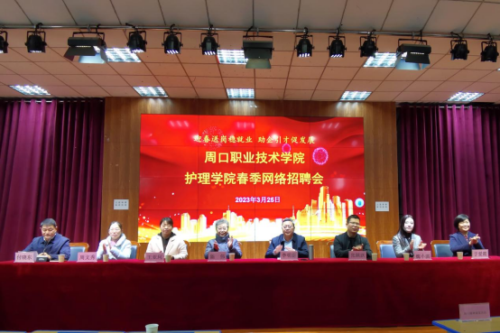 为进一步做好春季校园招聘工作,推进毕业生更高质量就业,3月25日,我校护理学院在文昌校区学术报告厅组织开展2023届毕业生线上线下专场招聘会。本次招聘会特邀周口人合医院、周口东新区人民医院、鄢陵周氏医院、周口淮海医院、周口精神康复医院参加。副校长李明臣,护理学院党总支书记于爱霞、院长付晓东及2023届护理专业毕业生参加招聘会,同步开通网络直播通道,数百名毕业生通过手机端观看了招聘会,并与用人单位线上互动沟通。