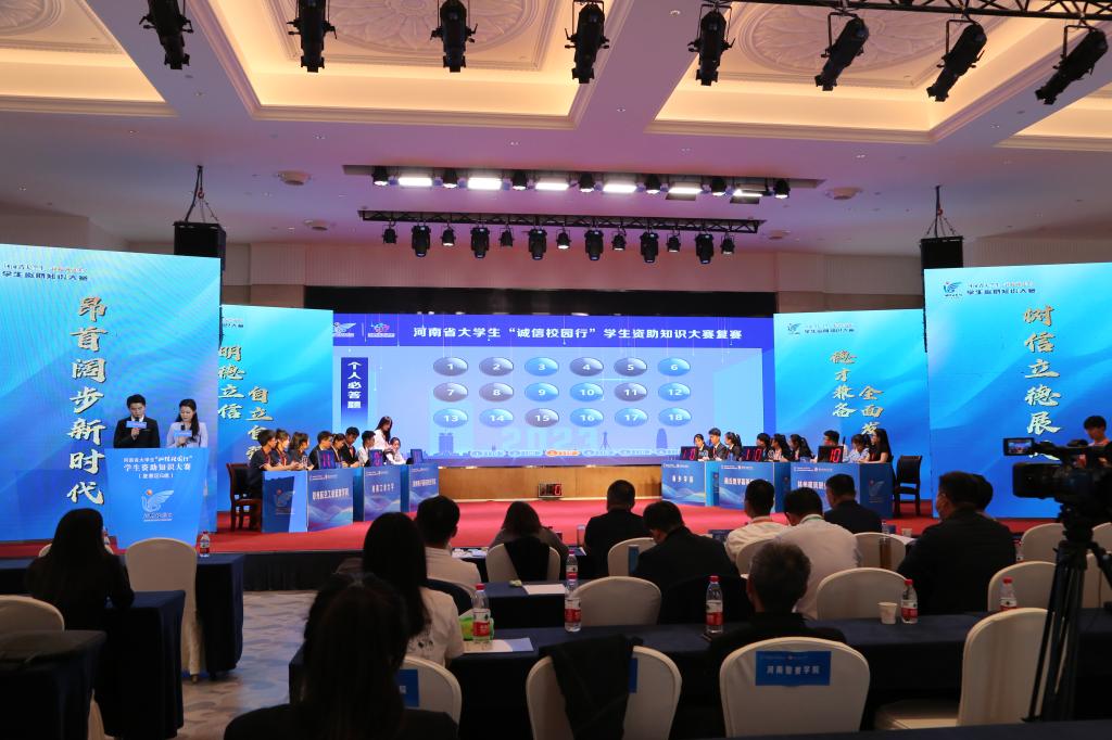 为积极宣传党和国家的学生资助政策与成效,充分展示广大学生在国家政策资助政策帮助下明德立信、自立自强、拼搏向上的青春风采,进一步营造形式多样、健康向上、格调高雅的诚信校园文化氛围,推动全省高校学生资助工作高质量发展。5月22日,由我校承办的河南省大学生“诚信校园行”学生资助知识大赛复赛(G组)在周口迎宾馆成功举办。