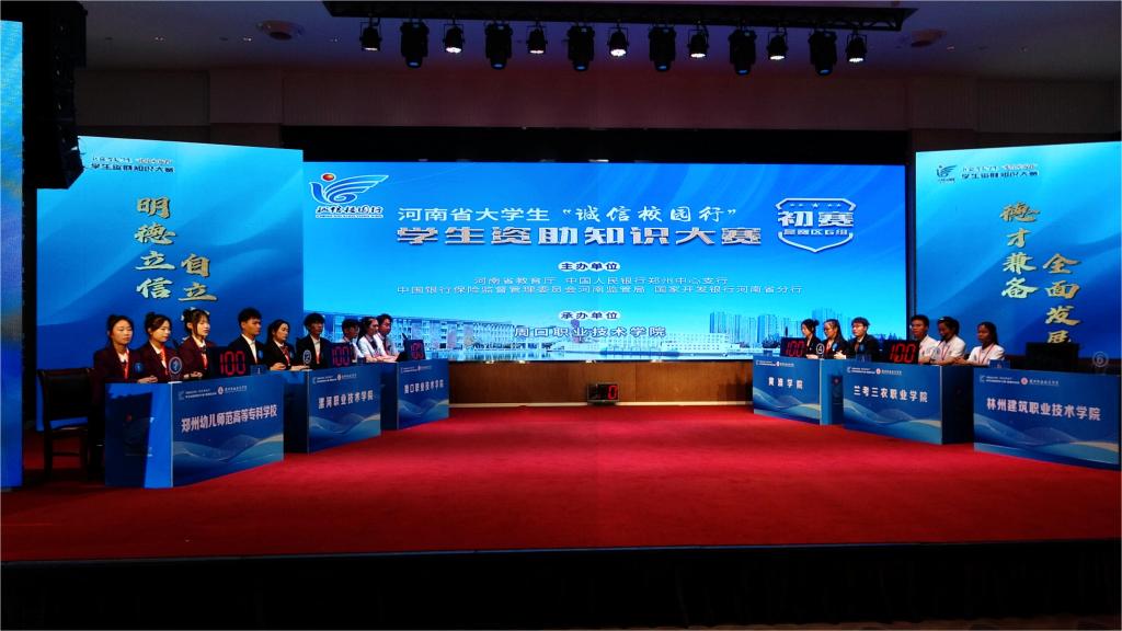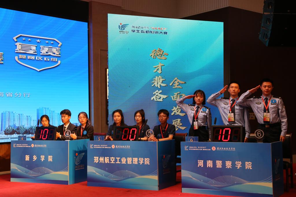大赛分为个人必答题、第一轮抢答题、集体必答题、第二轮抢答题和风险题五个环节进行。比赛中,来自全省21所高校的代表队同台竞技,各代表队选手全神贯注,踊跃作答,展现出良好的精神风貌。经过初赛、复赛、决赛三轮7场激烈的角逐,郑州航空工业管理学院、漯河职业技术学院、黄淮学院、新乡学院、河南警察学院5支代表队从中脱颖而出,成功晋级河南省大学生“诚信校园行”学生资助知识大赛总决赛。