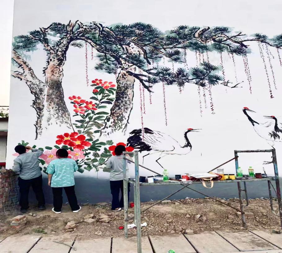 活动期间,在学前与艺术教育学院教师夏雁如、王晶的指导下,志愿者们以美丽乡村为主题,结合村庄的自然风景和文化特色,充分发挥专业特长,用画笔绘制出一系列具有乡村独特韵味的文化墙画和长廊,在提升村容村貌的同时,还成为了道德文化的宣传阵地,焕发出乡村振兴新活力。