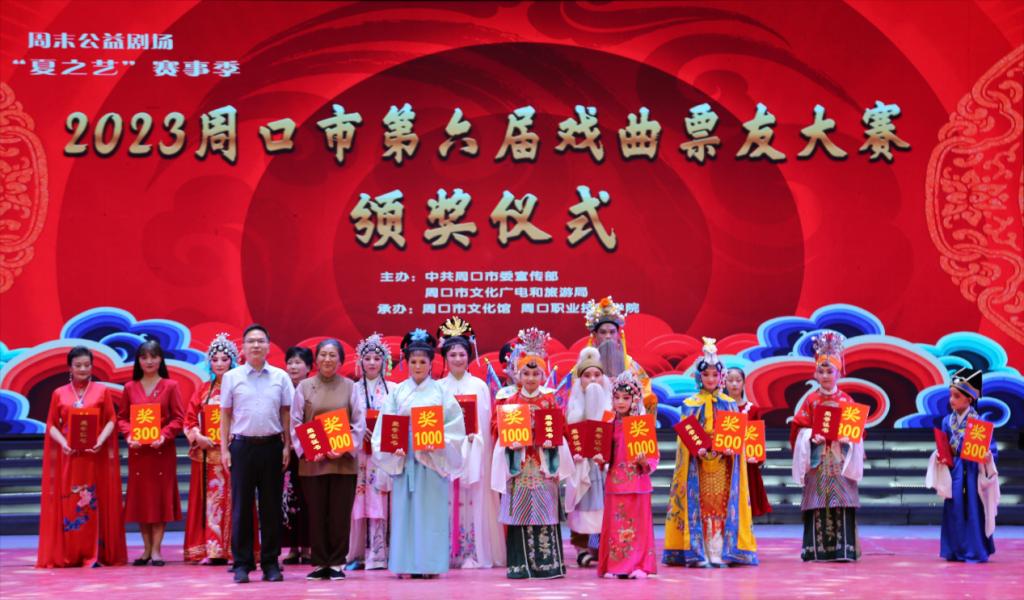 为展示周口市戏迷票友风采,搭建戏曲展示和交流平台,丰富人民群众文化生活,并提高我校办学影响力,6月21日晚,由中共周口市委宣传部、市文化广电和旅游局主办,市文化馆、周口职业技术学院承办的周末公益剧场“夏之艺”赛事季——2023周口市第六届戏曲票友大赛决赛在周口人民会堂举行。近千名戏曲爱好者齐聚一堂,一睹参赛票友风采。
