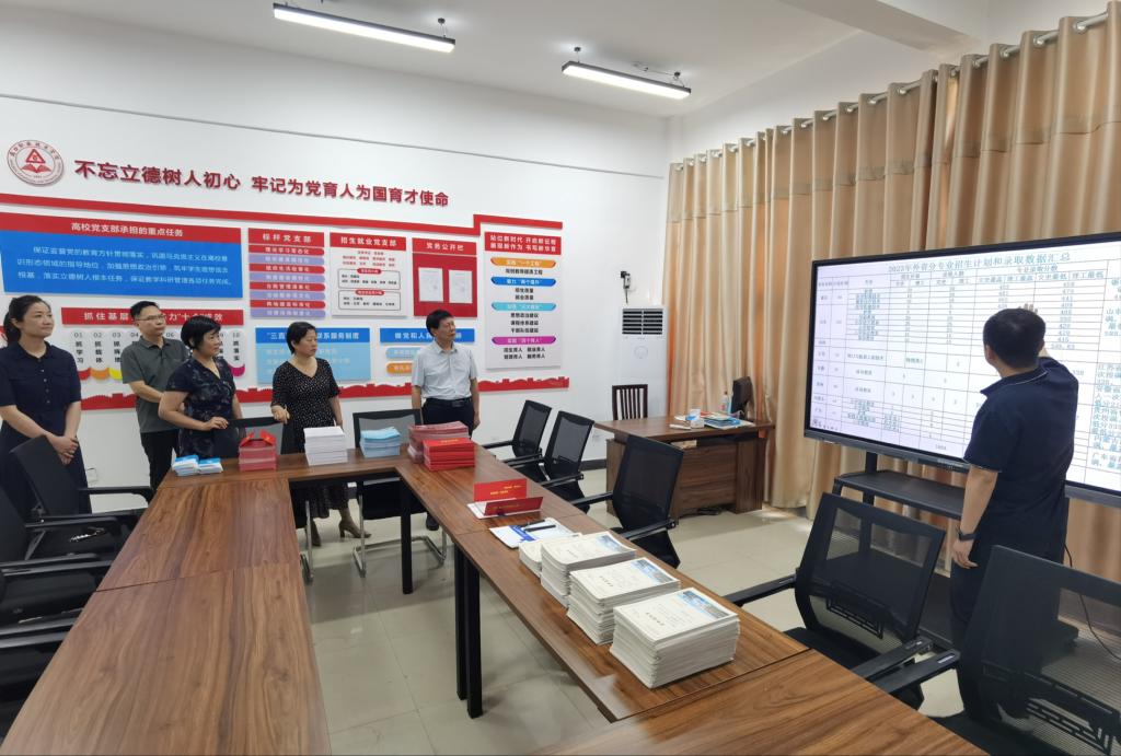 8月5日上午,校长李清臣,副校长李秀萍、王隼、于爱霞带领相关部门负责人到我校招生录取现场,亲切看望慰问招生录取一线工作人员,听取并指导招生录取工作各项事宜。
