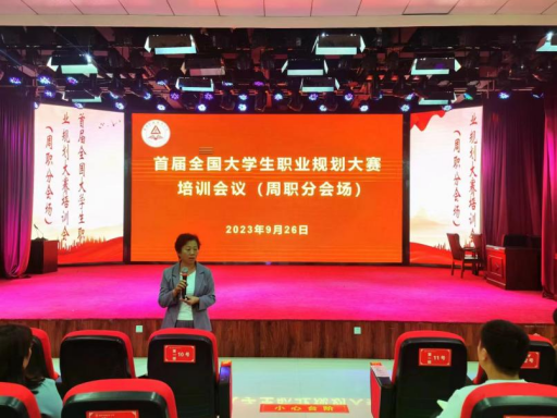 9月26日下午,教育部首届全国职业规划大赛培训工作会议召开,学校在开元校区艺术演播厅设分会场组织观看收听。副校长李秀萍出席,各二级院(部)学管副院长、就业指导员、全体辅导员,职业生涯规划课任课教师及招生就业处全体人员参会。