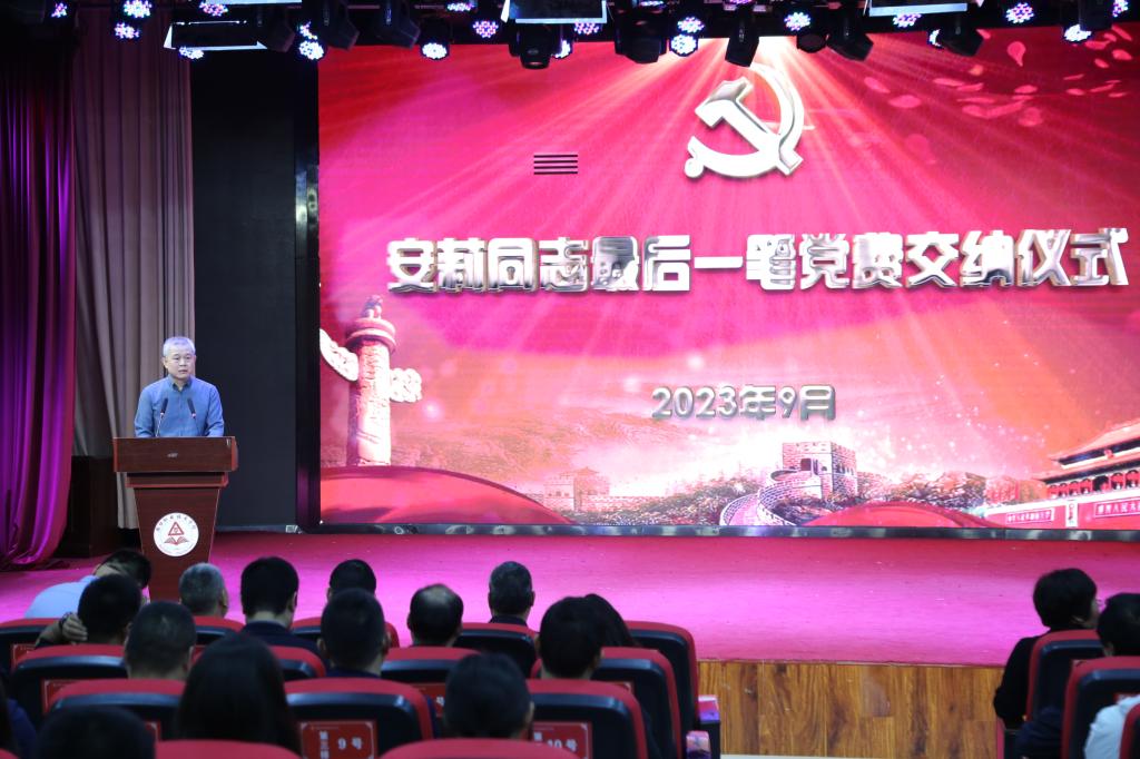 “这是母亲最后一次交纳党费了,也是她的遗愿,今天我替她完成。”9月28日下午,一场特殊的党费交纳仪式在周口职业技术学院艺术演播厅举行——我校已故离休干部安莉老师的儿子李学杰将母亲的“最后一笔党费”10000元转交给中共周口职业技术学院委员会离退休老干部支部。校党委副书记李明臣及学校200余名师生代表参加仪式,副校长王隼主持。