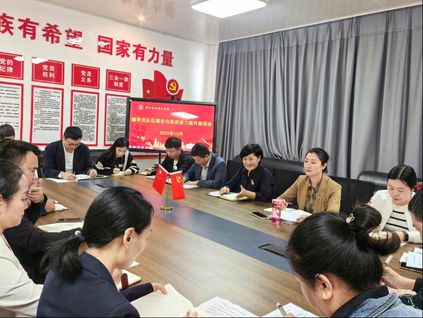为深入开展学习贯彻习近平新时代中国特色社会主义思想主题教育,扎实推进调查研究走深走实,促进辅导员队伍建设全面发展,10月25日至26日,副校长于爱霞带领学生处相关同志深入三个校区开展辅导员队伍建设与素质能力提升专题调研。各院部党总支书记、学管副院长、学管办主任及辅导员代表参加座谈。