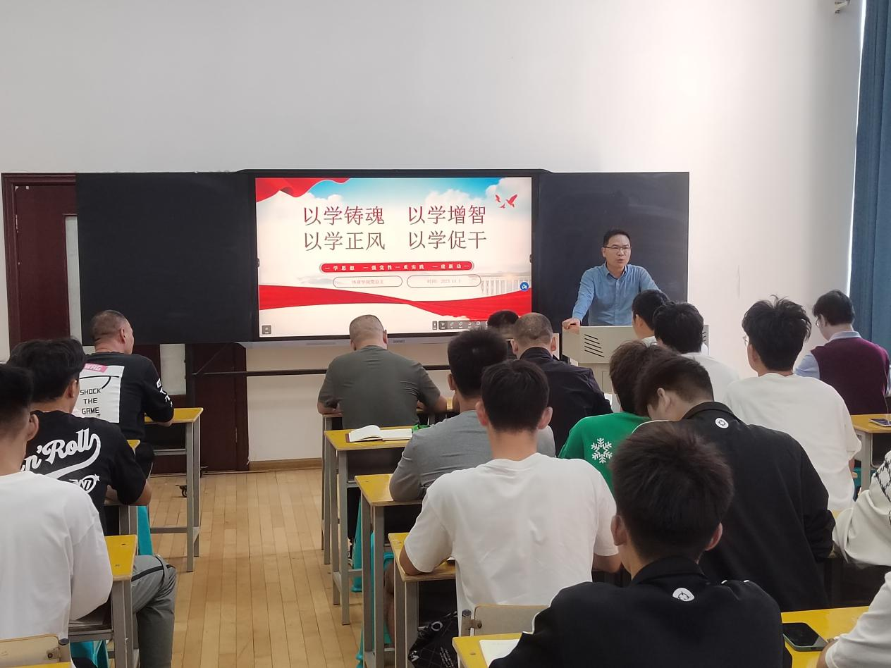 11月1日下午,副校长王隼深入体育学院讲授主题教育专题党课。体育学院党总支书记范伟杰主持,学院党政班子成员、全体党员、学生干部参加。