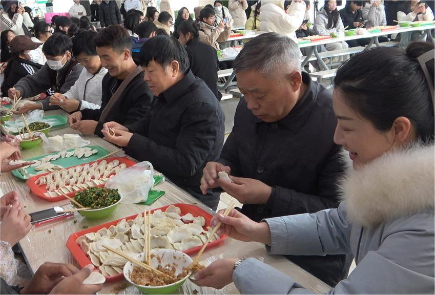 伴随着大家欢快的谈笑声,热腾腾的饺子出锅了。校领导为同学们盛上一碗碗香气四溢的焦鱼汤,师生们围坐在一起,一边喝着鲜美的鱼汤,一边品尝自己的劳动成果。活动现场气氛和谐,到处体现着“家”的温馨,让这个冬日格外温暖。