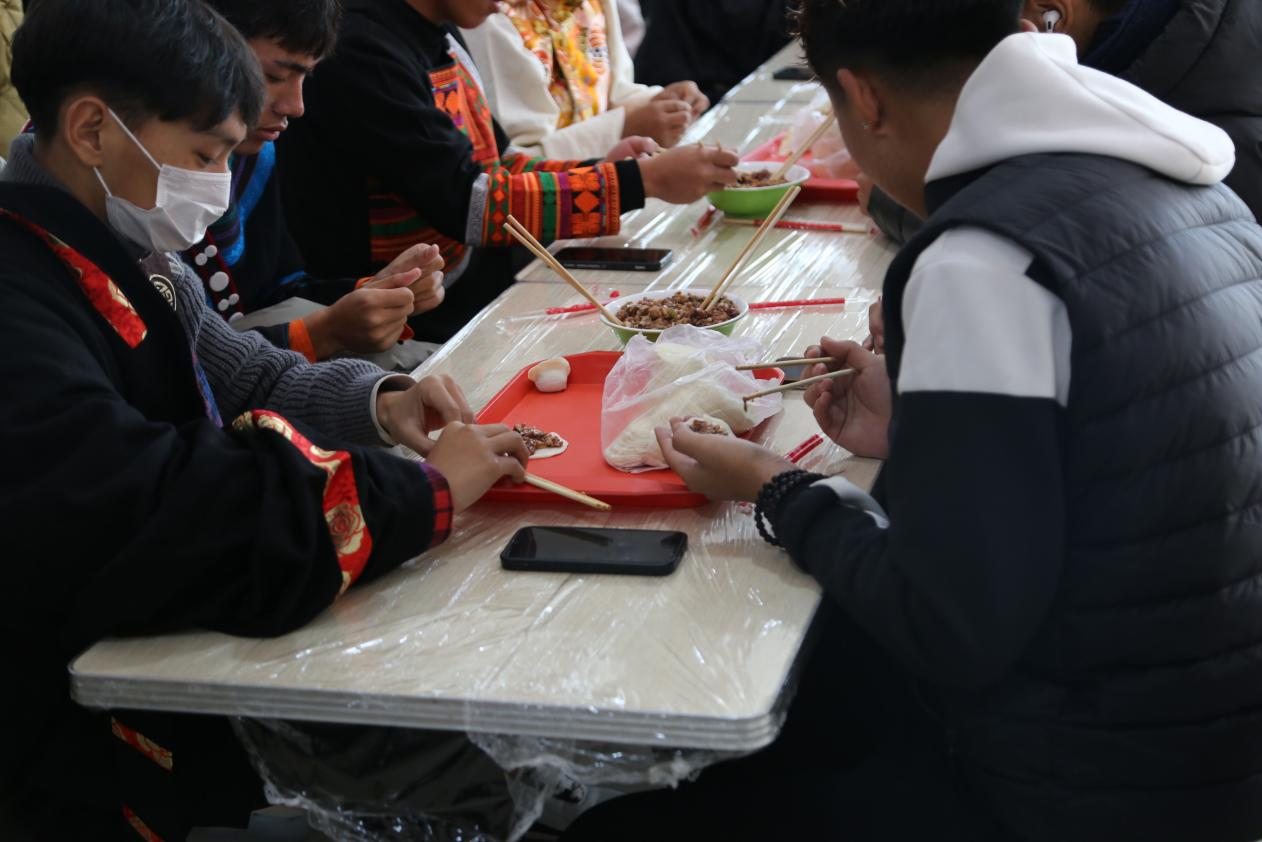 活动现场,摆放着用心准备的馅料、饺皮等材料,各民族师生欢聚在一起,热情高涨,纷纷捋起袖子,各显身手,包起饺子。校领导也在百忙之中加入到包饺子队伍中,和同学们亲切交流,畅谈日常,欢声笑语凝结成冬日里最温暖的祝福。