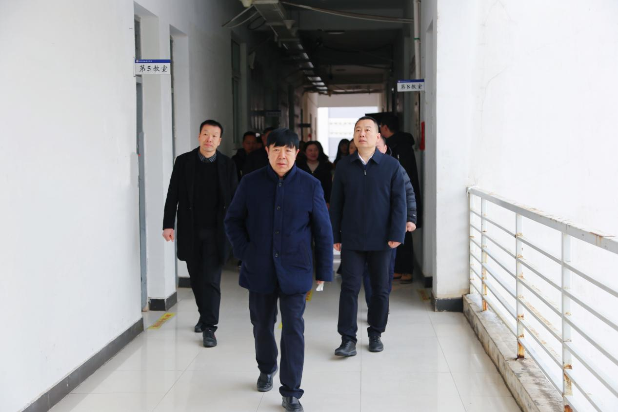 校长李清臣,党委副书记、工会主席郭汝礼,副校长于爱霞在文昌校区巡视
