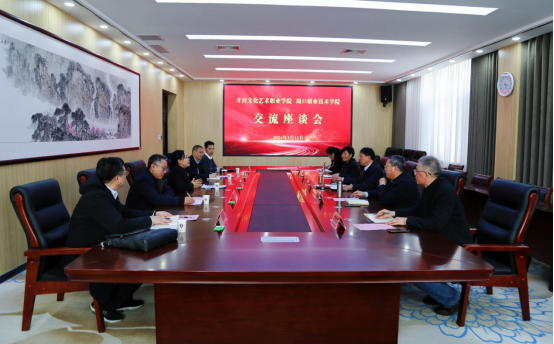 3月11日下午,开封文化艺术职业学院校长何新、副校长张力一行5人到我校考察交流,交流座谈会在开元校区第六会议室举行。校长李清臣,党委副书记李明臣、副校长于爱霞出席。双方相关部门负责同志参加座谈。