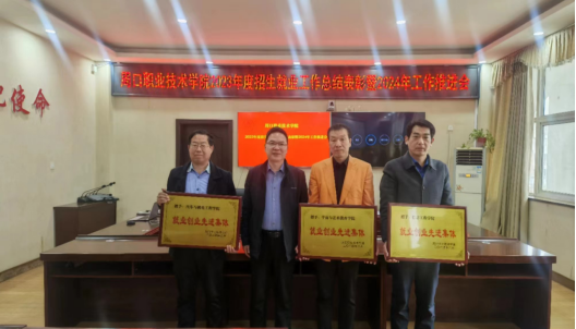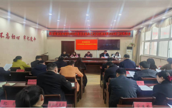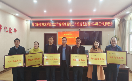 招生就业处副处长崔昕宣读《周口职业技术学院关于表彰2023年度招生就业工作先进集体和先进个人的决定》;招生就业处招生办主任郑直对2024年招生方案作详细解读,并强调招生宣传中的注意事项;招生就业处副处长王芳安排近期就业创业工作,希望各二级学院(部)按照时间节点推进本部门就业创业工作。