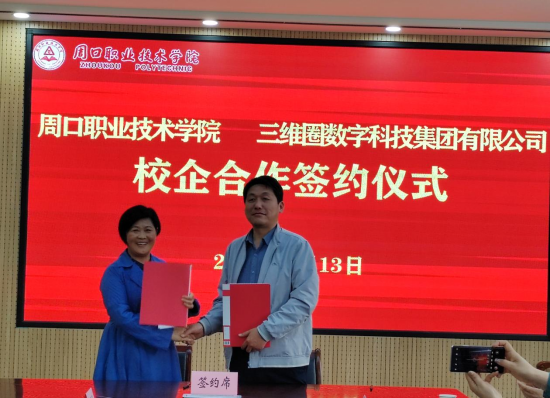 此次签约仪式是周口职业技术学院与三维圈数字科技集团有限公司基于共同发展愿景和战略目标,携手合作,为双方共同发展提供新的机遇,必将有助于校企双方在人才培养、社会培训和科学研究方面实现优势互补、资源共享、合作共赢,创造真正的校企共同体。