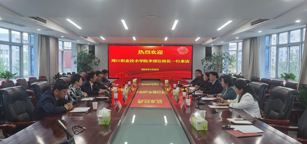 在江苏工程职业技术学院,校党委书记秦志林、副校长孙兵等会见了李清臣、李秀萍一行,并进行座谈交流。秦志林介绍了学校办学历史、办学理念及办学成效,李清臣介绍了周口职业技术学院的办学情况,并对江苏工程职院创新校企共引、共享博士机制及做法给予高度评价。双方还就学校规划建设、专业建设、人才培养、师资队伍建设等事项进行深入交流。