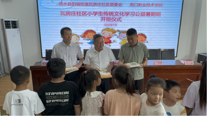 为充分发挥党建引领作用,进一步营造良好的社区共建氛围,7月1日上午,学校到商水县瓦房庄店社区举行党建引领送温暖暨公益暑期支教活动开班仪式。校党委副书记李明臣出席,学校团委、学前与艺术教育学院相关负责人,商水县阳城办事处瓦房庄店相关负责同志,瓦房庄社区小学校长及学生参加。仪式由河南省人民检察院驻瓦房庄第一书记宋赟主持。