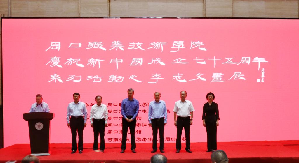 值此新中国成立75周年之际,为讴歌国家改革发展成就,展示学校美术专业建设成果,推进艺术交流和传承,9月26日上午,学校庆祝新中国成立75周年系列活动之李志文画展在周口市博物馆隆重开幕。此次展览由周口职业技术学院、周口市文化广电和旅游局主办,周口市博物馆、周口市美术家协会、周口市文化馆、河南开放大学老年大学周口分校等单位协办,精选我校李志文老师从教四十年来创作的近百幅佳作,深情礼赞伟大的党、伟大的祖国、伟大的新时代。