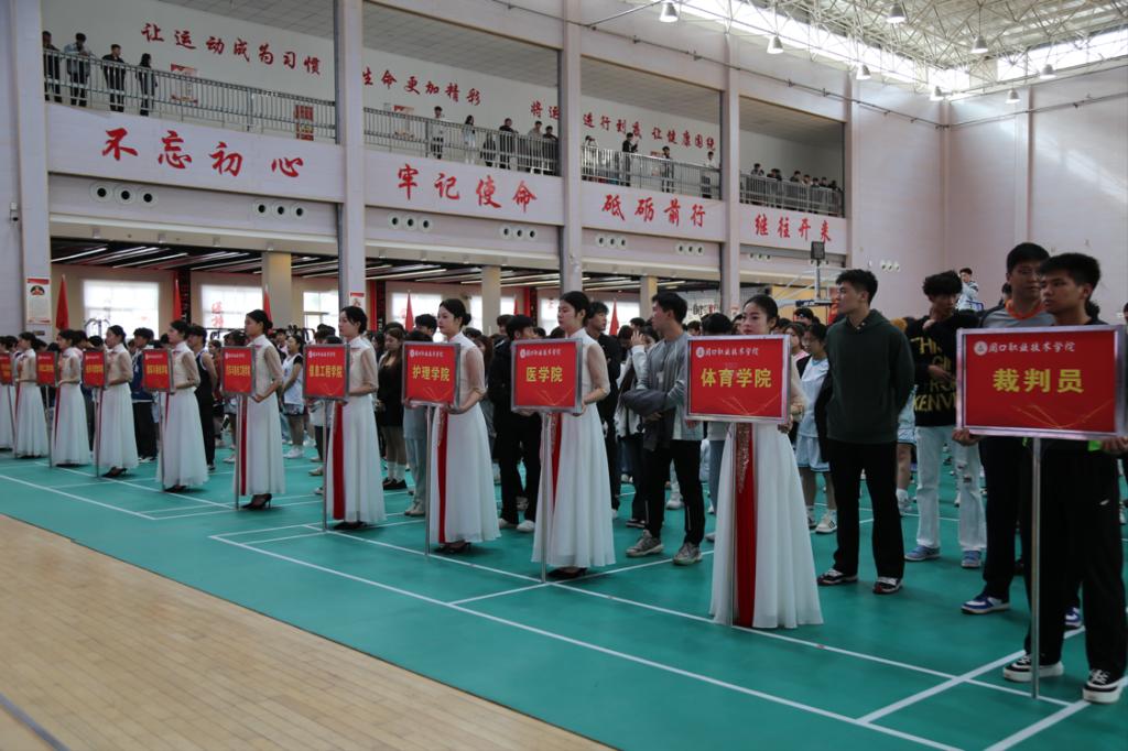 10月25日下午,周口职业技术学院第十八届“迎新杯”篮球比赛在开元校区体育馆开幕。校党委副书记、工会主席郭汝礼,副校长李秀萍出席开幕式。学生处负责人,各二级学院(部)党总支书记、学管副院长、学管办主任,全体裁判员及运动员参加。团委书记闻檑主持。