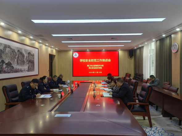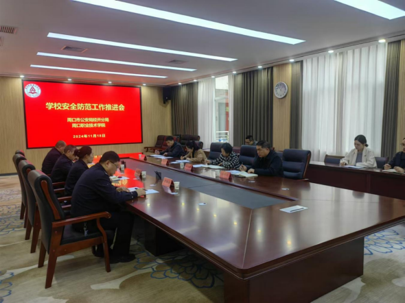 为进一步落实校园安全工作要求,提高校园安全防控能力,11月18日上午,周口市公安局经开分局政委时文慧,政保大队队长尹耀兵、治安大队队长程抗洪,太昊路派出所所长赵宝兴一行在我校开元校区第六会议室召开学校安全防范工作推进会。副校长李秀萍出席,党政办、保卫处、学生处负责人及保卫处相关人员参加,会议由保卫处处长李可凡主持。