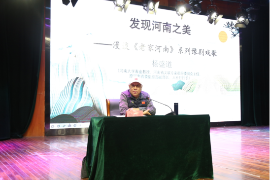 讲座在开元校区砺德厅举行,现场座无虚席。杨盛道教授围绕何谓“豫剧戏歌”、“老家河南”系列戏歌的创作背景、主要内容及鉴赏三个方面展开讲解。他深情地讲到,创作系列豫剧戏歌,就是想把新时代河南风貌唱出来,让河南人自信起来,这些戏歌不仅展现了河南的自然风光和人文景观,更是热爱河南的抒情之歌。