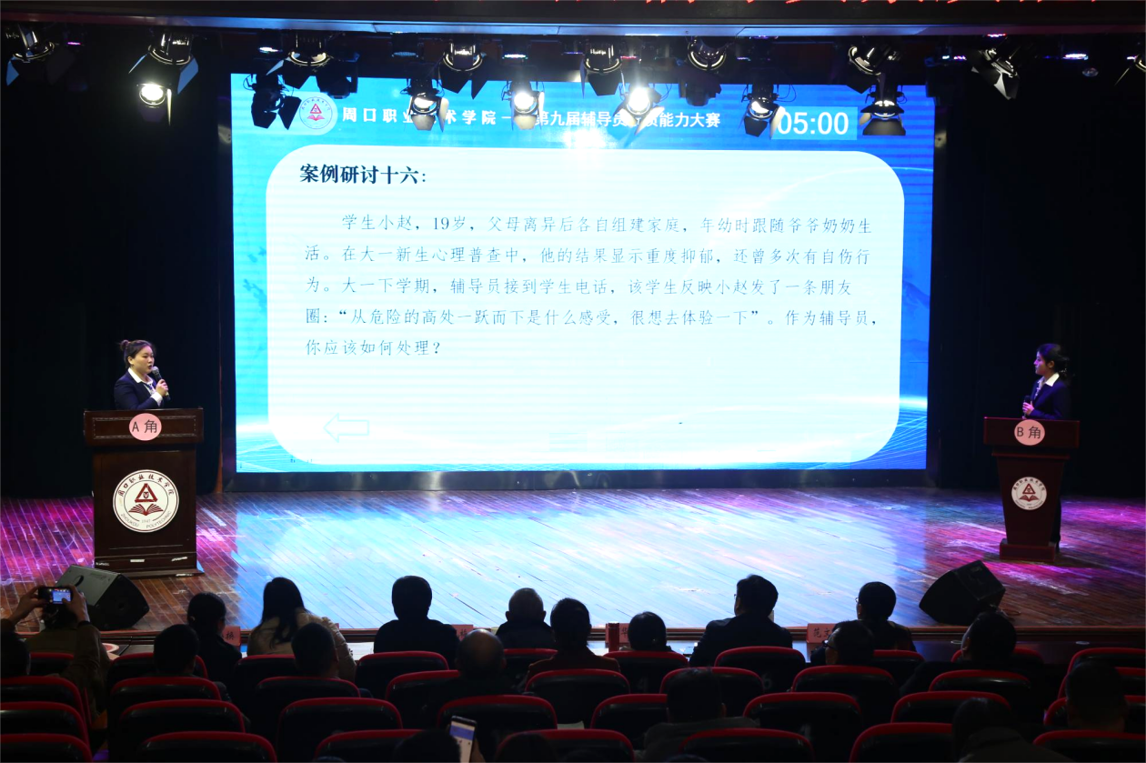 为不断提升辅导员理论素养、职业能力和专业水平,加强辅导员队伍专业化、职业化、专家化建设,12月5日,周口职业技术学院第九届辅导员素质能力大赛决赛在开元校区砺德厅举行。副校长李秀萍出席并致辞,各院(部)党总支书记、学管副院长、学管办主任、全体在校生辅导员、学生处相关人员及学生代表现场观摩。