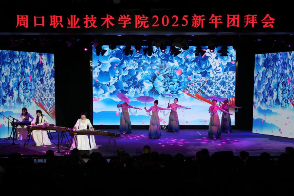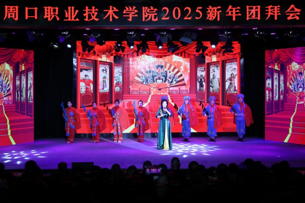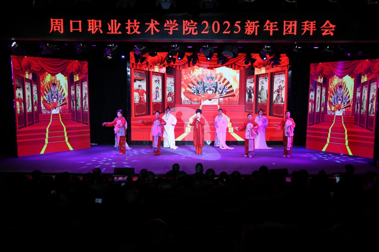 凯歌辞旧岁,阔步启新篇,12月31日下午,周口职业技术学院2025新年团拜会在开元校区砺德厅隆重举行。周口市人大常委会副主任刘建中,校领导李清臣、李明臣、郭汝礼、李秀萍、王隼、于爱霞与学校离退休老同志代表、全体教职员工、学生代表欢聚一堂,同贺新春,共话学校发展未来。