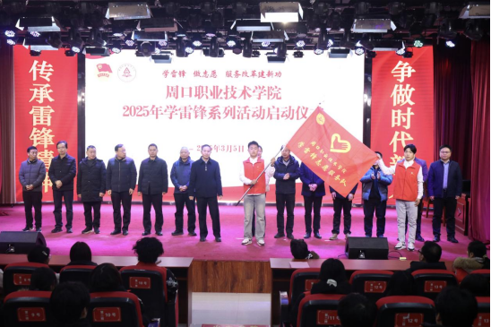 为深入贯彻落实习近平总书记关于志愿服务的重要论述和重要指示批示精神,大力弘扬雷锋精神,发展志愿服务事业,3月5日上午,学校在开元校区艺术演播厅隆重举办“学雷锋 做志愿 服务改革建新功”2025年周口职业技术学院学雷锋系列活动启动仪式。校党委副书记、工会主席郭汝礼出席,宣传部、学生处、团委等相关部门负责人及各院部党总支书记、团总支书记、学生志愿者代表参加。仪式由团委副书记孙配显主持。